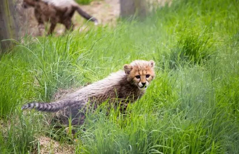 这种动物就是年幼的猎豹,它们背上的这些白毛被认为是一种拟态,而其模仿对象可能就是蜜獾,看看是不是很像: