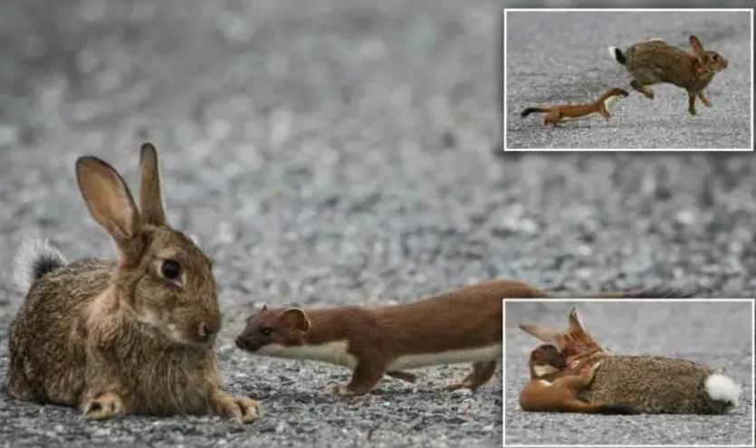 鼬科动物经常以捕食比自己更大的猎物而闻名,例如白鼬就经常捕食比自己大10倍的兔子,这是因为这些动物的身体强壮、咬合力巨大。