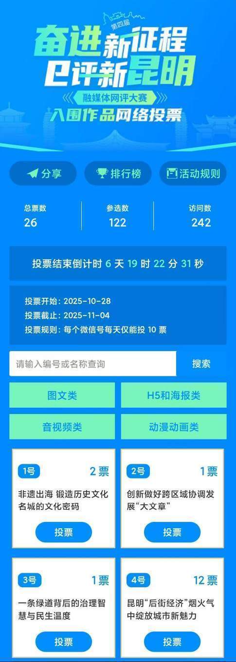 找到入口:锁定第四届“奋进新征程 e评新昆明”融媒体网评大赛专题,或直接扫描下方投票二维码,一键直达战场。